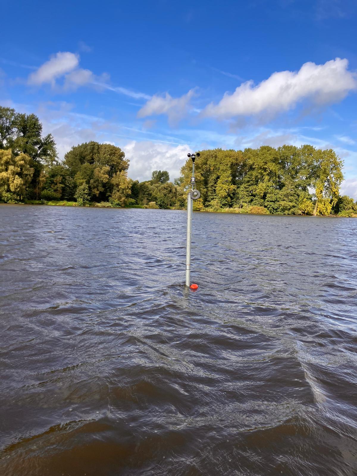 Im Rahmen der Machbarkeitsstudie wurde am Vörder See ein Anemometer sowie Temperaturlogger installiert. Das Gestänge steht nun ziemlich mittig auf dem See, sodass die Windgeschwindigkeit optimal erfasst werden kann.