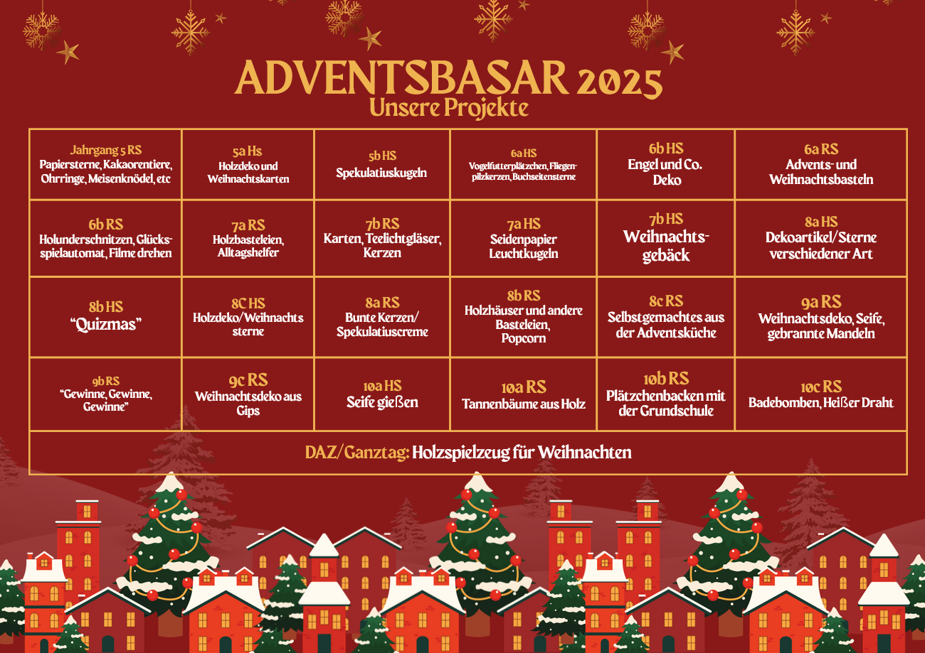 Am Donnerstag, den 20. November 2025, laden die Hauptschule Bremervörde und die Findorff-Realschule herzlich zum gemeinsamen Adventsbasar in die Campus-Mensa ein. Zwischen 15 und 18 Uhr erwartet die Besucher eine festliche Atmosphäre mit liebevoll gestalteten Ständen, kulinarischen Leckerbissen und spannenden Aktionen. Bereits an den Projekttagen vom 18. bis 20. November werden die Schülerinnen und Schüler beider Schulen mit großem Engagement basteln, backen und vorbereiten. Dabei entstehen kreative Handarbeiten, Adventsdekorationen und selbstgemachte Köstlichkeiten, die auf dem Basar zum Verkauf angeboten werden.